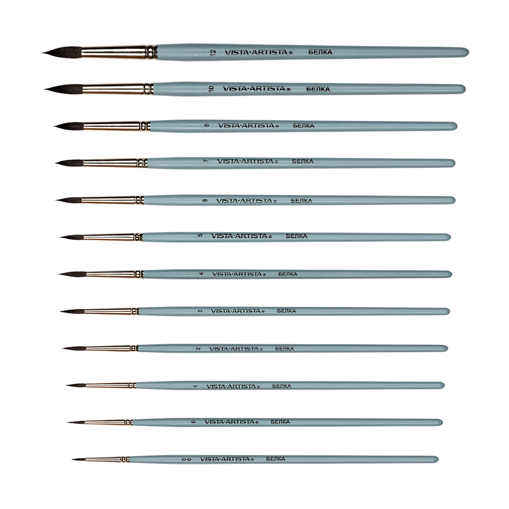 Кисти произведены из натурального волоса белки высокого качества. Незаменимы в работе с водоразмываемыми красками: акварелью, гуашью, темперой и акрилом.