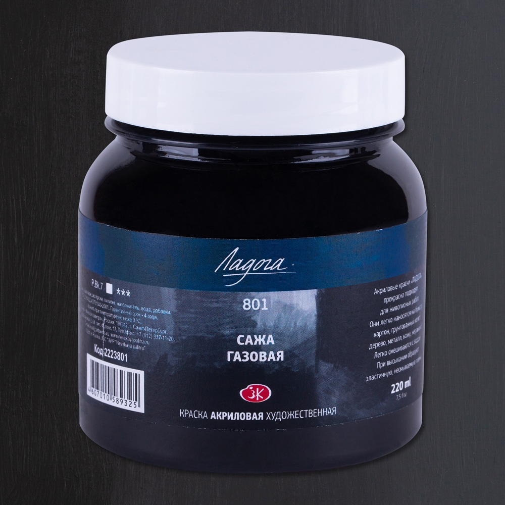 Серия акриловых красок «ЛАДОГА» производится заводом художественных красок ЗХК «Невская палитра». Представлена в тубах и банках различных объемов.