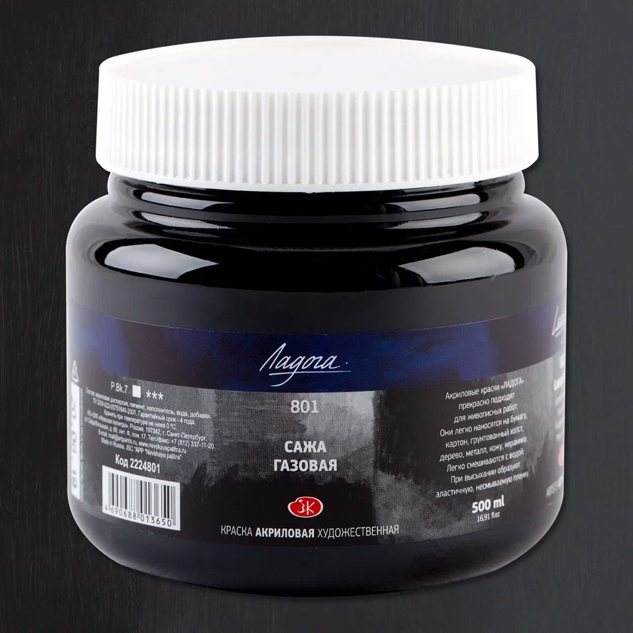Серия акриловых красок «ЛАДОГА» производится заводом художественных красок ЗХК «Невская палитра». Представлена в тубах и банках различных объемов.