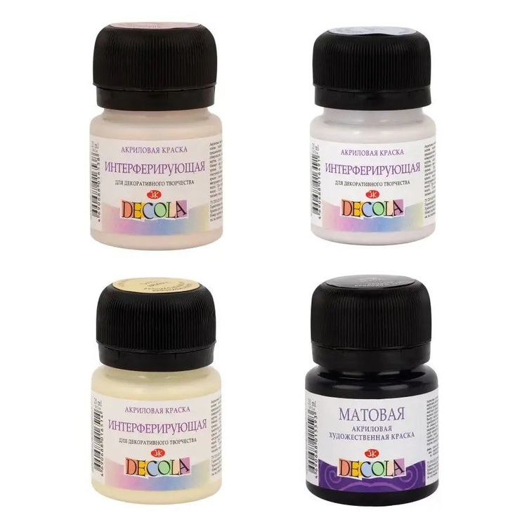 Акриловые краски DECOLA — предназначены для декоративно-оформительских работ. Изготавливаются на основе водной акриловой дисперсии, хорошо смешиваются друг с другом, обеспечивают равномерное покрытие цветом.