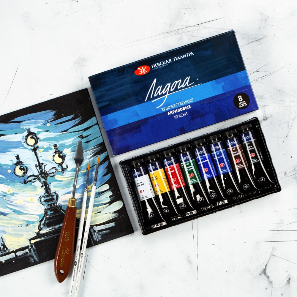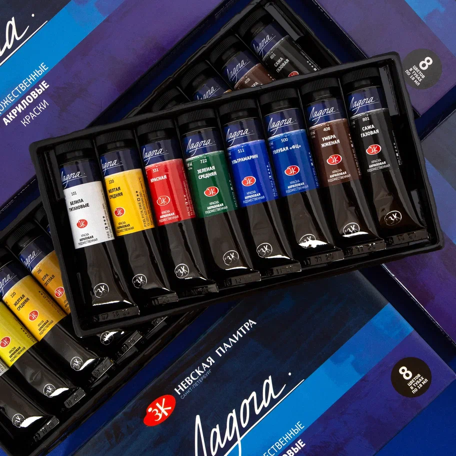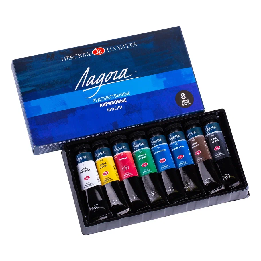 Набор профессиональных художественных акриловых красок «Ладога» идеально подходит для живописных, декоративных и дизайнерских работ. Эти краски созданы с учётом современных требований к живописи, обеспечивая яркость, чистоту цвета и удобство в использовании.