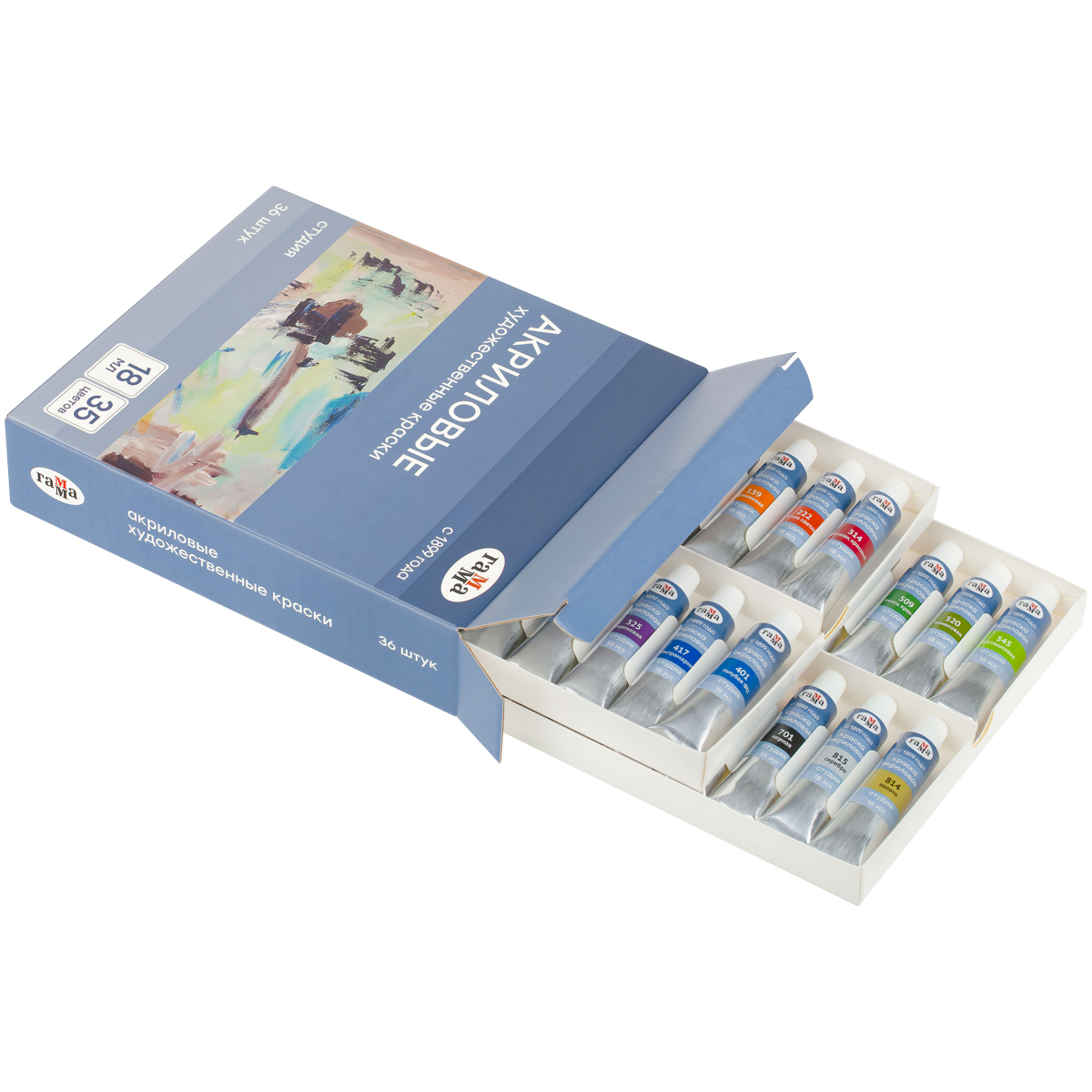 Набор акриловых красок ГАММА «Студия» предназначен для художественно-живописных и декоративно-прикладных работ. Краски отличаются насыщенным цветом, высокой адгезией и прочностью красочного слоя. Они прекрасно разносится и подходят для работы на самых разных поверхностях.