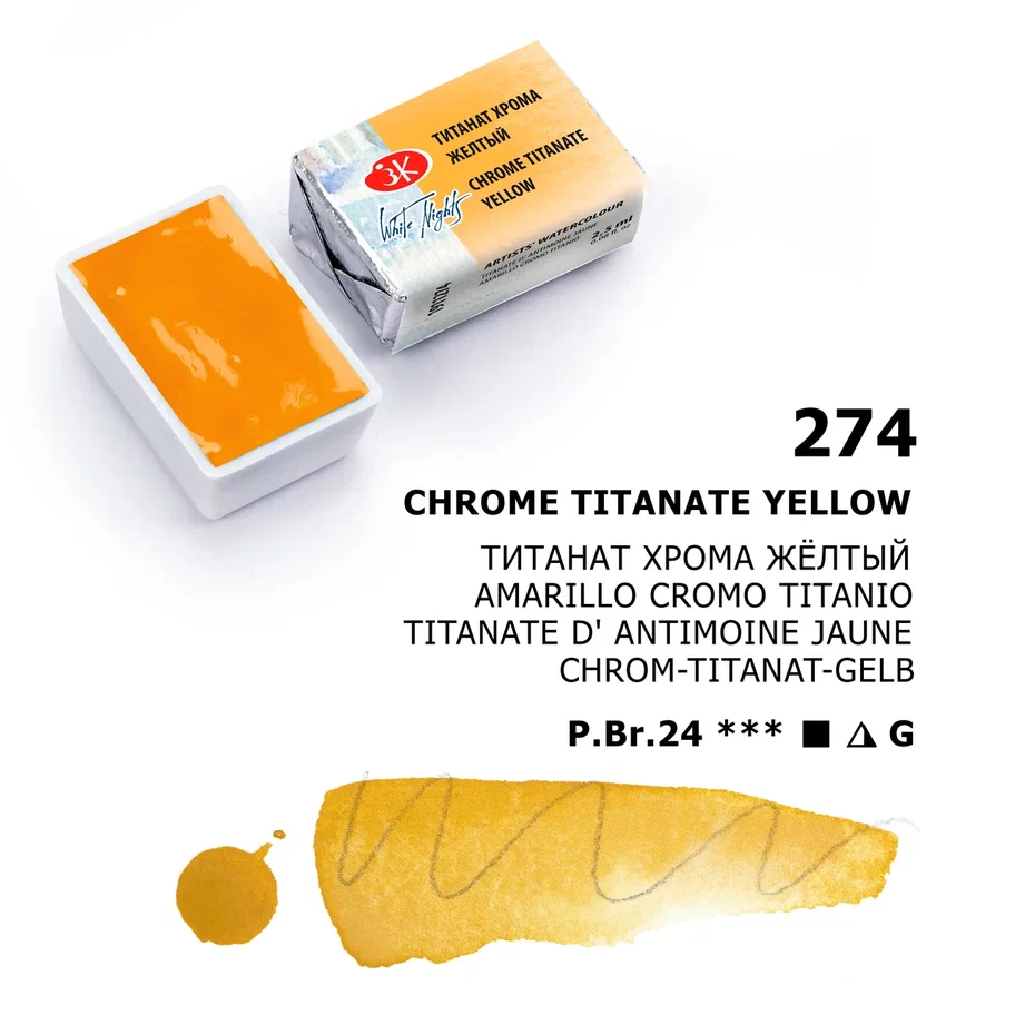 Акварель БЕЛЫЕ НОЧИ кювета 2.5 мл, 274 Титанат хрома жёлтый NP-1911274