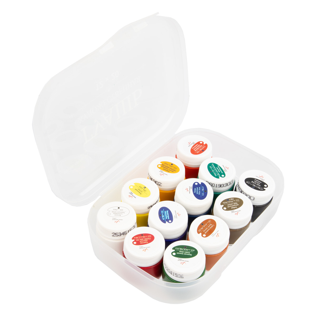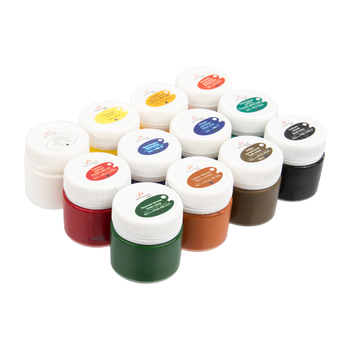 - Формат: 12 цветов по 20 мл в пластиковом боксе.