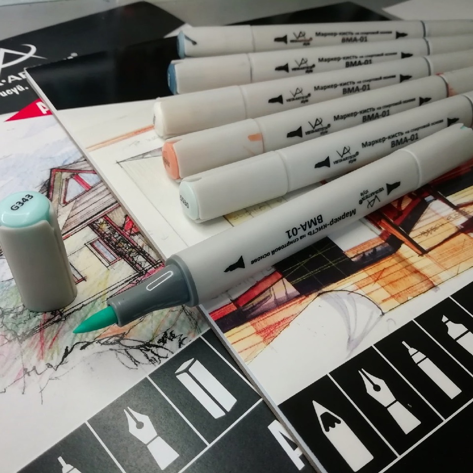 Маркеры могут использоваться во многих художественных направлениях, таких как прорисовка дизайнов, создание иллюстраций, граффити и др.