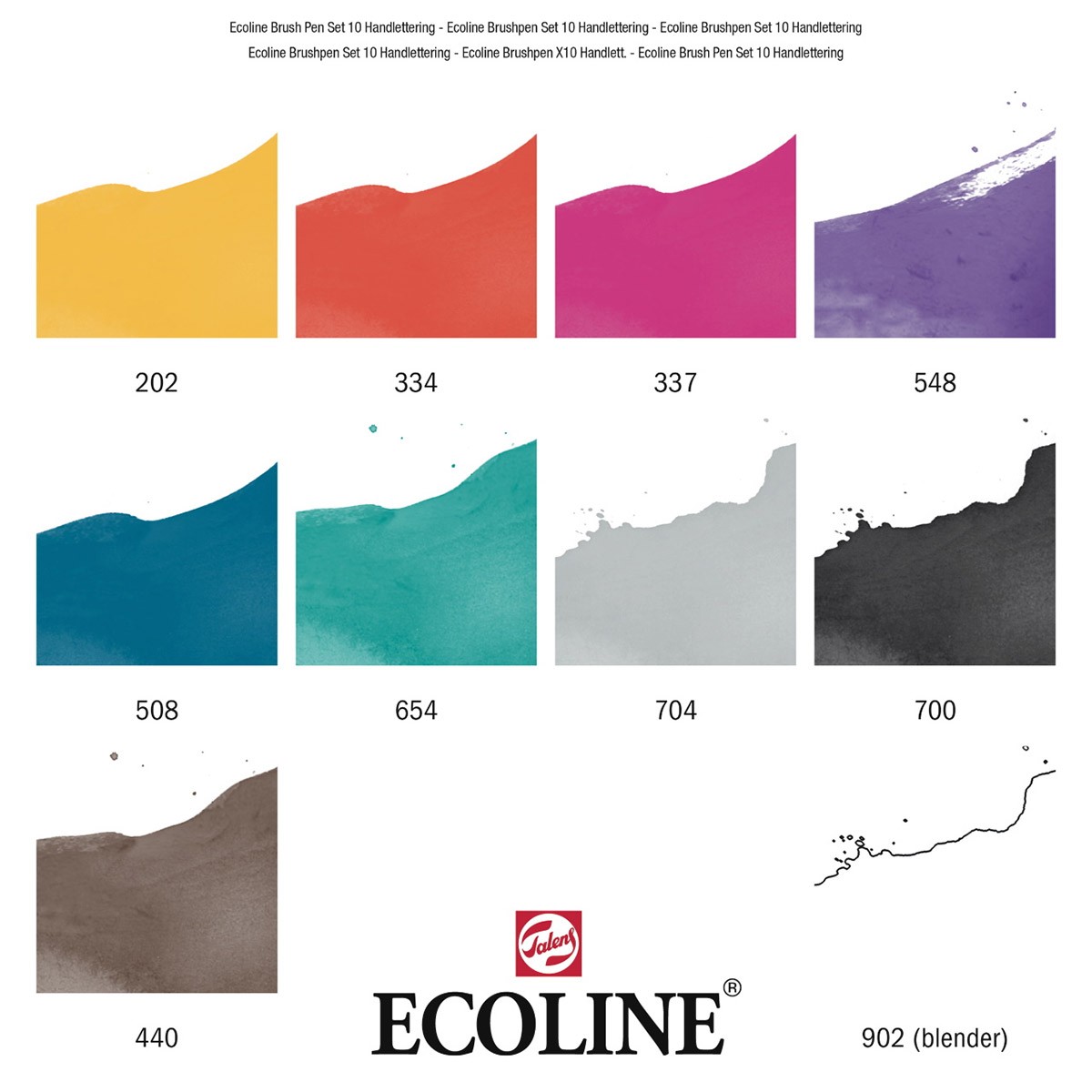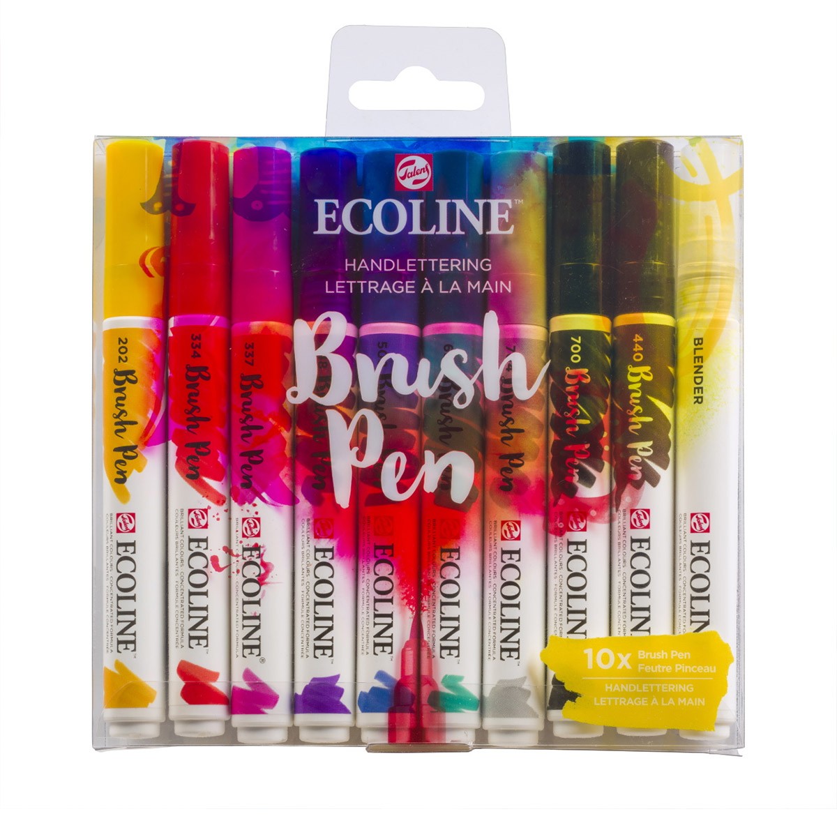 Набор акварельных маркеров-кистей Ecoline Brush Pen «Hand Lettering» (10 шт.) — искусство шрифта и цвета.