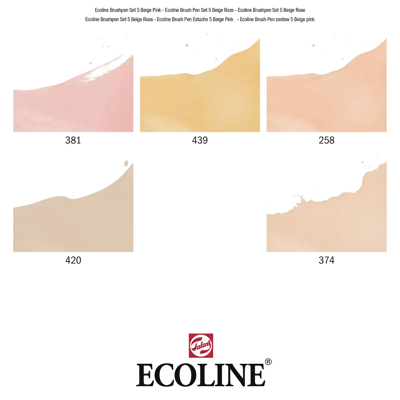 Набор акварельных маркеров-кистей Ecoline Brush Pen (5 цветов) — изысканная гамма бежевых и розовых оттенков.