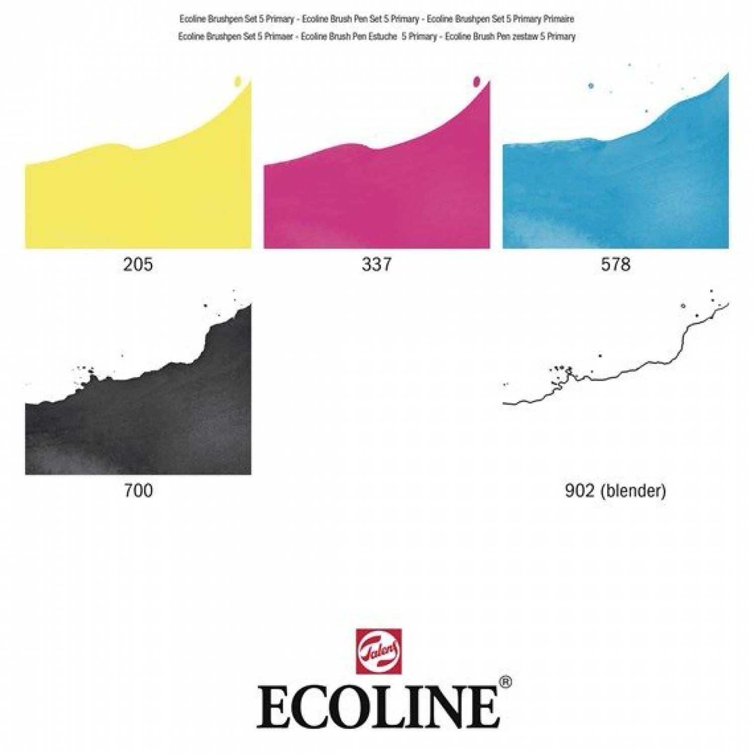 Набор акварельных маркеров-кистей Ecoline Brush Pen «Primary» (5 шт.) — основа палитры и безграничное смешивание.