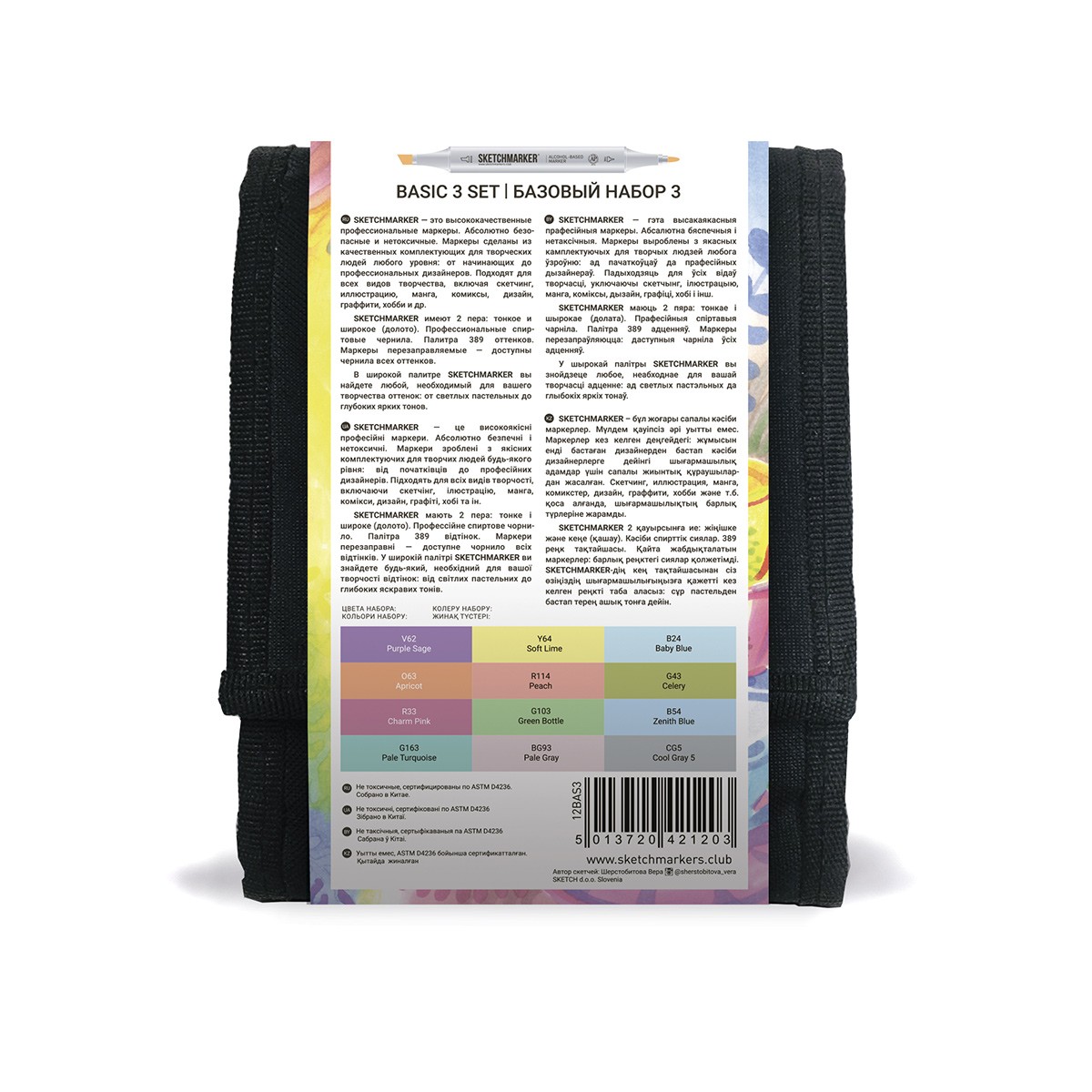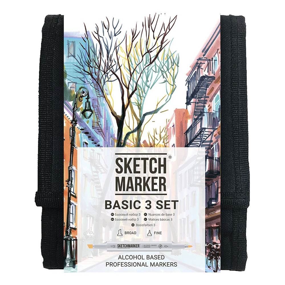 Набор двухсторонних спиртовых маркеров SKETCHMARKER Basic 3 (12 шт.) — свежие природные оттенки для ваших иллюстраций.