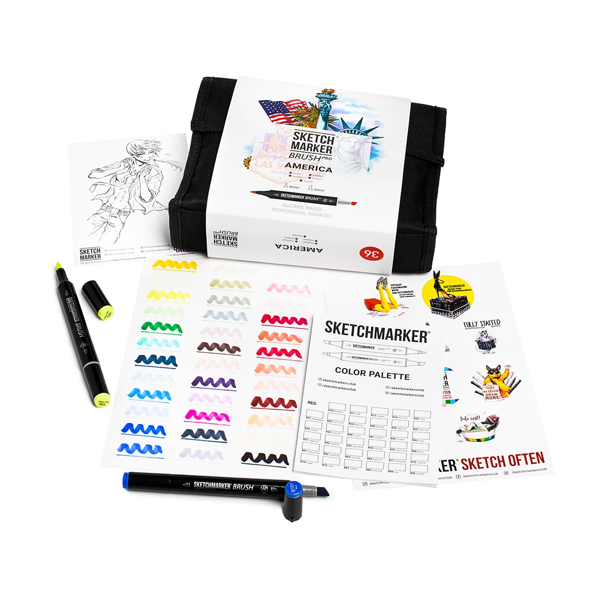 Набор двусторонних спиртовых маркеров SKETCHMARKER BRUSH PRO 36 AMERICA — многогранная палитра, вдохновленная духом контрастов.