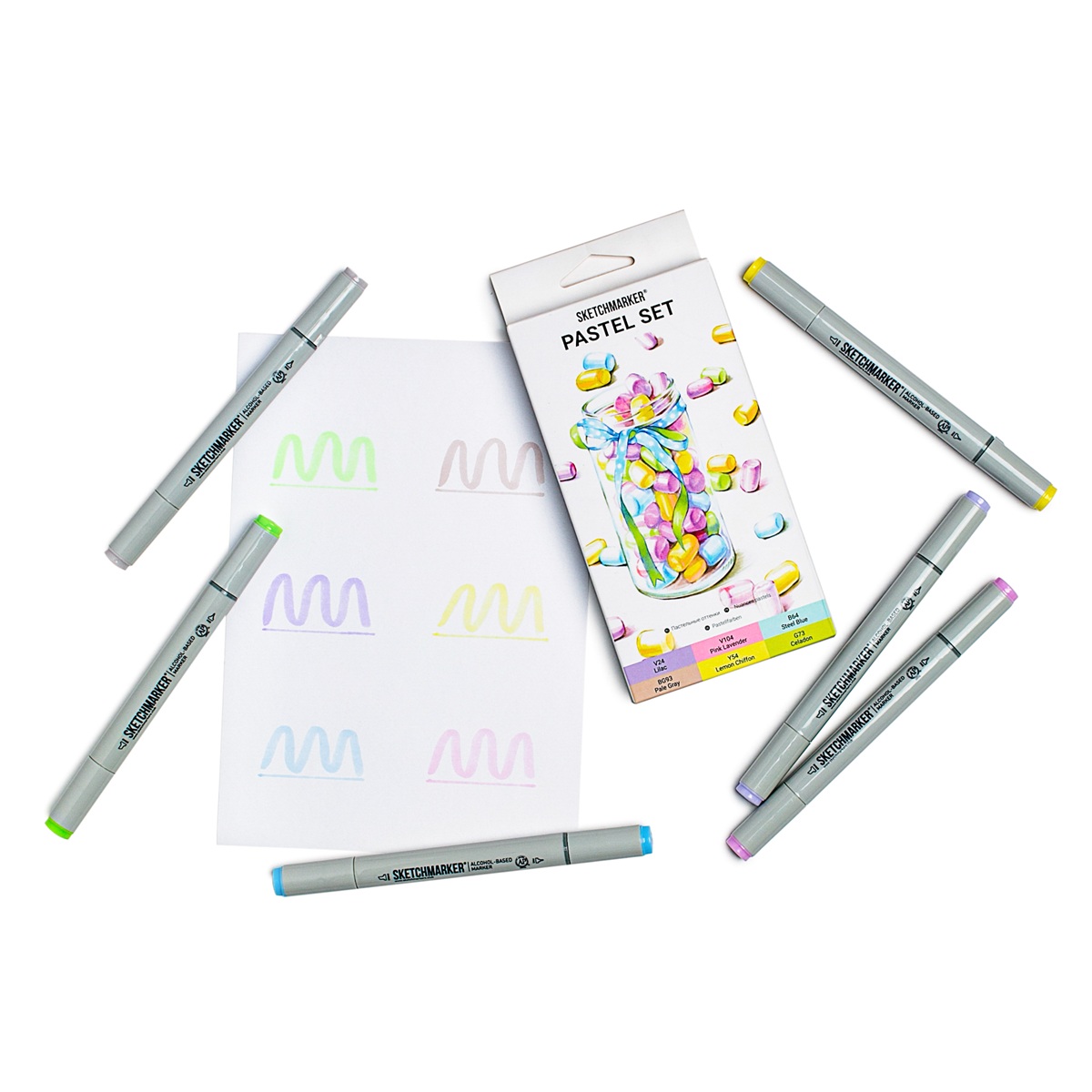 Набор двухсторонних спиртовых маркеров SKETCHMARKER Pastel, 6 шт — воздушная палитра для нежных иллюстраций и мягких акцентов.