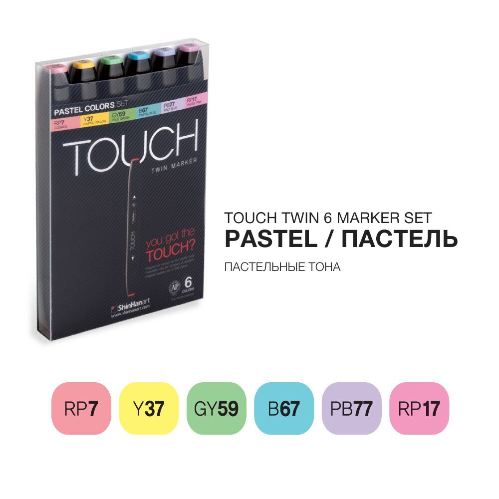 Набор спиртовых маркеров ShinHan Art TOUCH TWIN Pastel Color Set, 6 шт — базовая палитра для профессионального дизайна и иллюстрации.