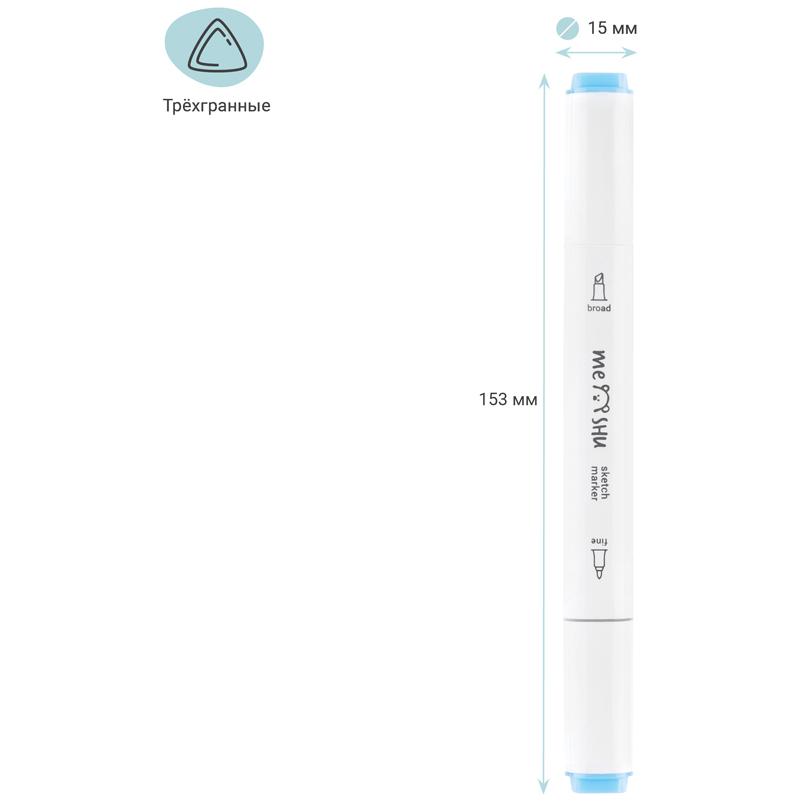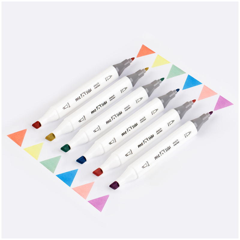 Набор двусторонних маркеров для скетчинга Meshu — идеальный выбор для художников, дизайнеров, иллюстраторов и любителей скетчинга, подходят для создания аниме и манги. Эргономичный трехгранный корпус удобно лежит в руке и позволяет эффективно прорабатывать мелкие детали рисунка. Чернила на спиртовой основе быстро высыхают, обладают водостойкостью, нетоксичны и не портят поверхность бумаги. Маркеры обладают пулевидным (2 мм) и скошенным (6 мм) наконечниками, что позволяет прорабатывать как мелкие детали рисунка, так и закрашивать большие области.