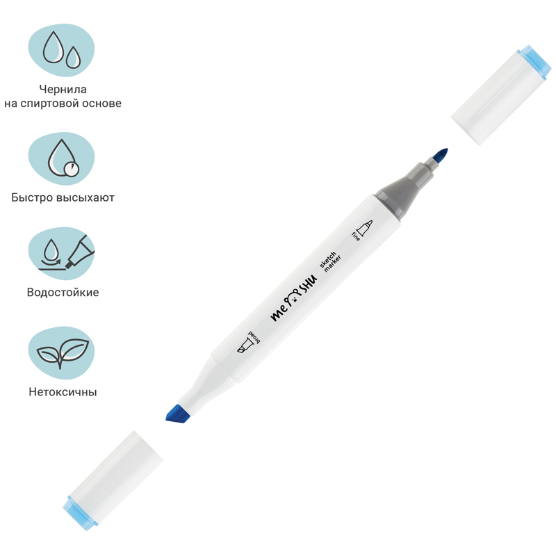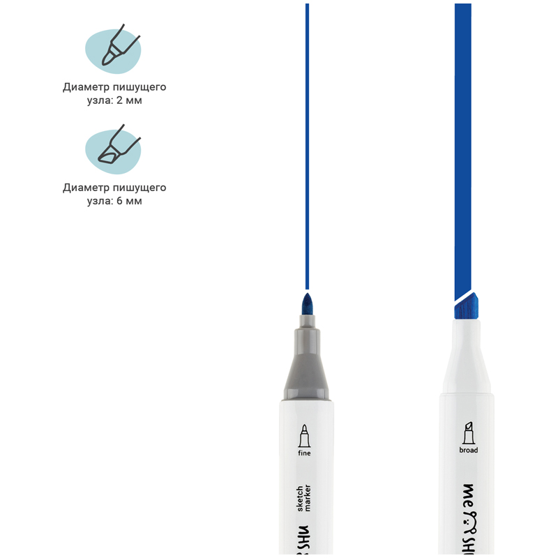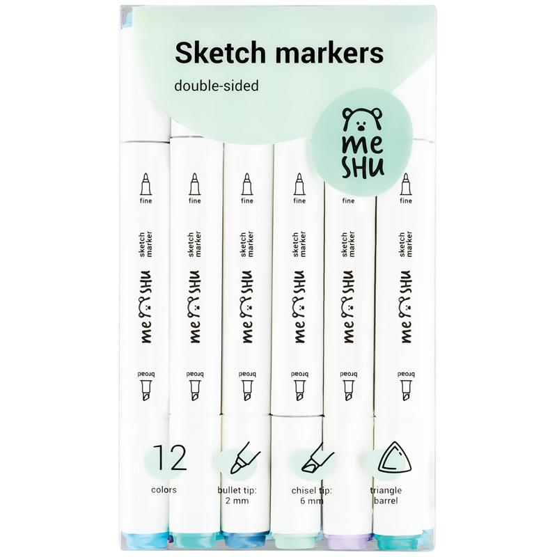 Набор двусторонних маркеров для скетчинга MESHU — идеальный выбор для художников, дизайнеров, иллюстраторов и любителей скетчинга, подходят для создания аниме и манги. Эргономичный трехгранный корпус удобно лежит в руке и позволяет эффективно прорабатывать мелкие детали рисунка. Чернила на спиртовой основе быстро высыхают, обладают водостойкостью, нетоксичны и не портят поверхность бумаги. Маркеры обладают пулевидным (2 мм) и скошенным (6 мм) наконечниками, что позволяет прорабатывать как мелкие детали рисунка, так и закрашивать большие области.