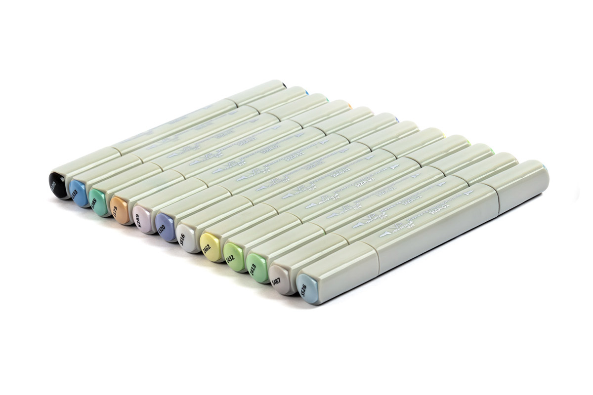 Наборы двухсторонних маркеров Vista-Artista Style серии SMA-12 представляют собой экспертные подборки из 12 цветов, сгруппированных по тематическому принципу. Эти инструменты идеально подходят для реализации самых разных творческих задач: от архитектурных и интерьерных проектов до создания персонажей и ботанических этюдов. Спиртовые чернила профессионального качества ложатся на бумагу без полос, обеспечивая гладкое и равномерное покрытие.