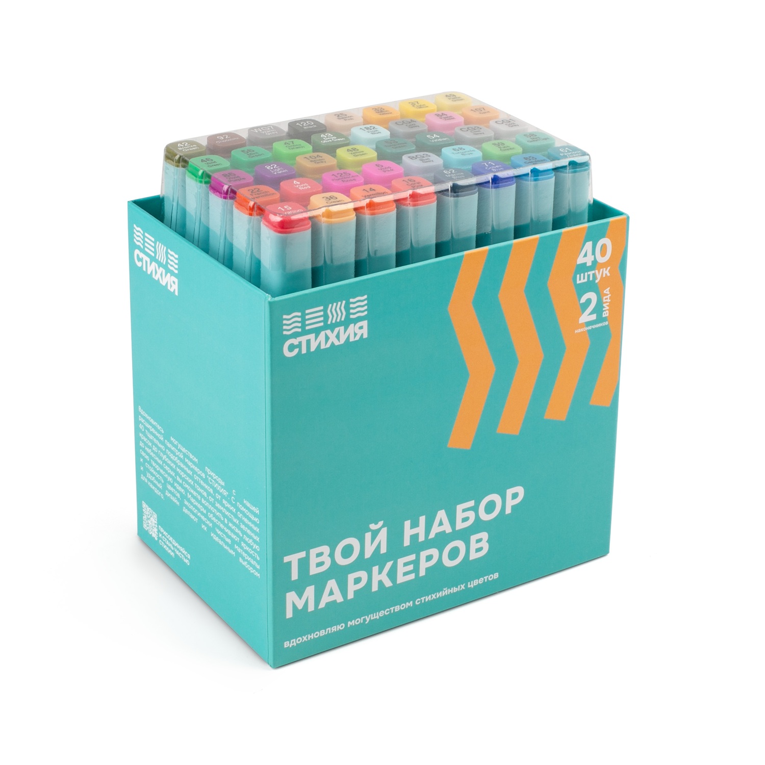 Набор спиртовых маркеров «СТИХИЯ» (40 цветов) — универсальная палитра натуральных оттенков для творчества.