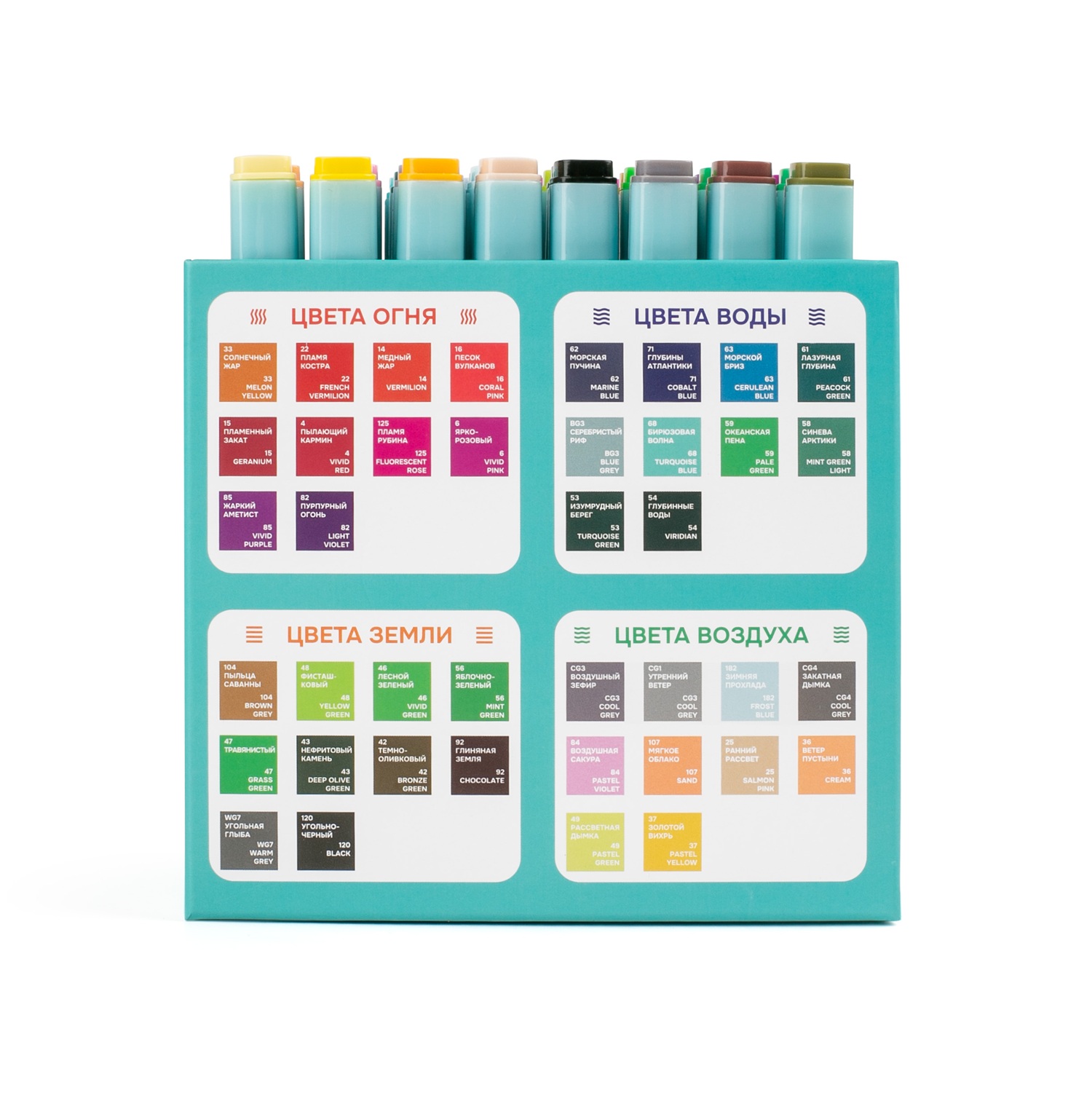 Экологически чистые материалы и эргономичный дизайн делают этот набор отличным выбором для скетчинга, иллюстрации и дизайнерских набросков. Цветовая палитра разделена на четыре тематические группы: Огонь, Вода, Земля и Воздух. Такое распределение помогает художнику интуитивно подбирать гармоничные сочетания для воплощения любых идей — от ярких огненных пейзажей до мягких атмосферных этюдов.