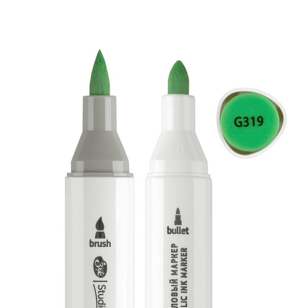 Маркер акриловый двусторонний СОНЕТ перо кисть/пуля 1 шт G319 зелёный NP-273-G319