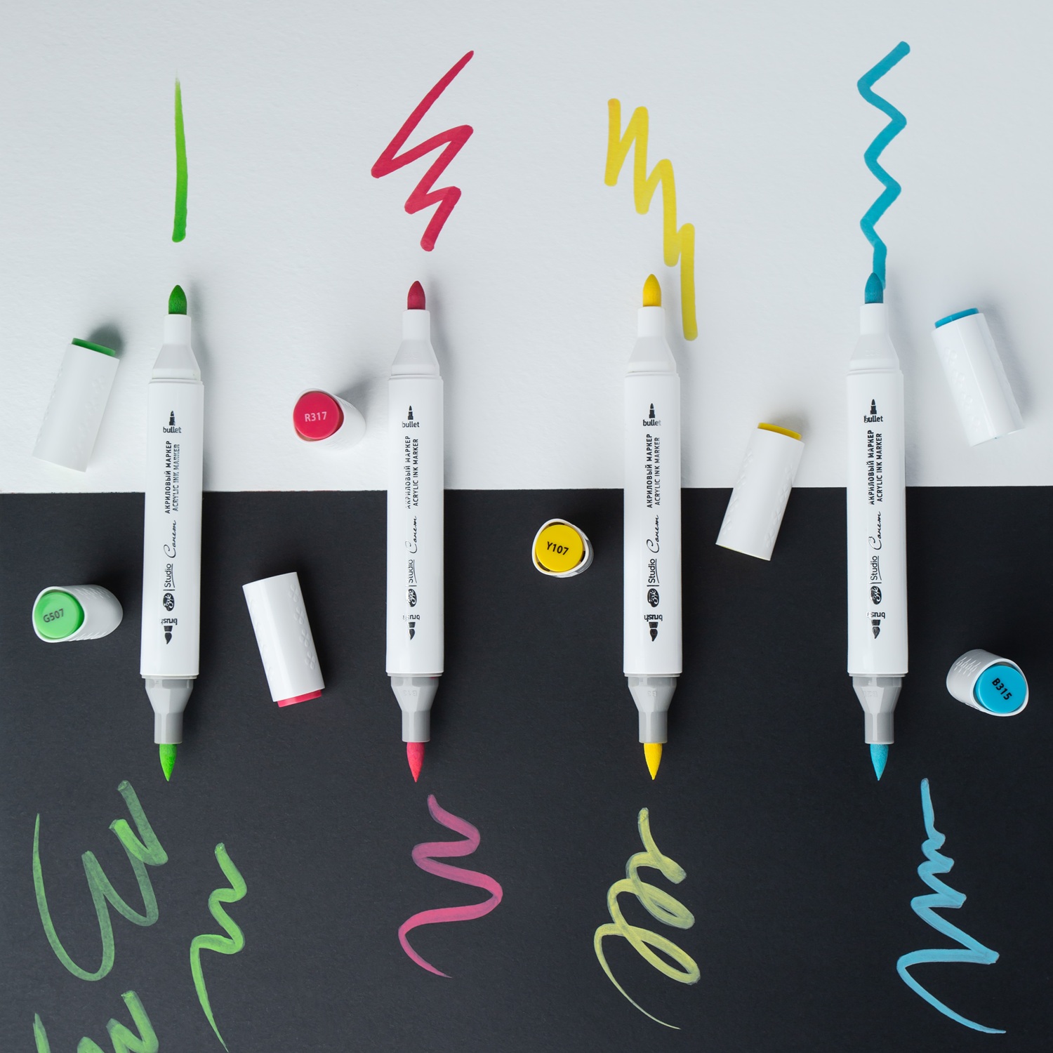 Акриловые маркеры на водной основе — это современное решение для письма, рисования и работы в смешанных техниках. Они обладают превосходной адгезией и идеально ложатся на любые поверхности, особенно эффективно проявляя себя на холсте, бумаге и дереве. Благодаря высокой укрывистости, маркеры создают насыщенный и равномерный красочный слой, который после высыхания превращается в прочную несмываемую пленку.