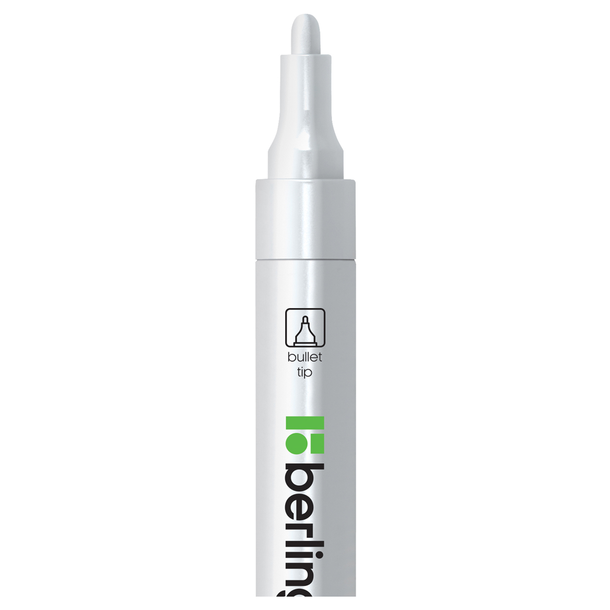 Прочный металлический корпус защищает маркер от повреждений в условиях интенсивной работы в мастерских или на производстве. Закругленный пишущий узел обеспечивает плавную подачу чернил и позволяет варьировать ширину линии от 2 до 4 мм в зависимости от угла наклона. Внушительный ресурс длины непрерывной линии в 600 метров гарантирует долговечность использования одного инструмента.