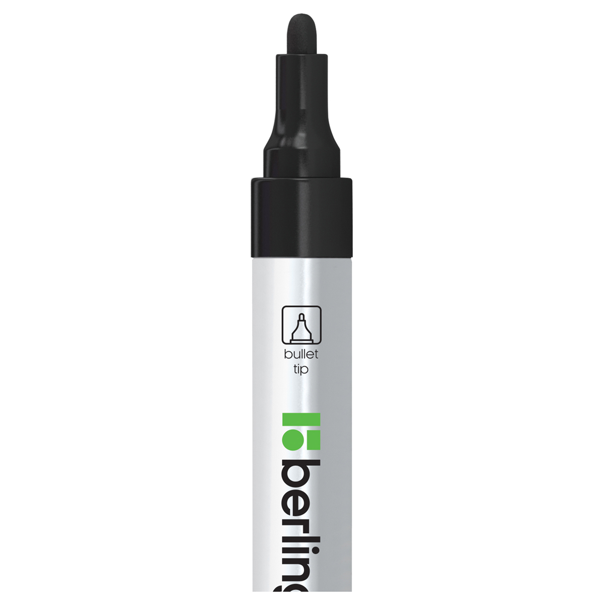 Прочный металлический корпус защищает маркер от повреждений в условиях интенсивной работы в мастерских или на производстве. Закругленный пишущий узел обеспечивает плавную подачу чернил и позволяет варьировать ширину линии от 2 до 4 мм в зависимости от угла наклона. Внушительный ресурс длины непрерывной линии в 600 метров гарантирует долговечность использования одного инструмента.