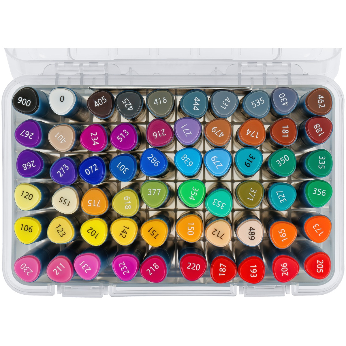 В наборе 60 основных цветов. Перманентные чернила на спиртовой основе не токсичны и быстро сохнут на поверхности, оставляя яркий след.