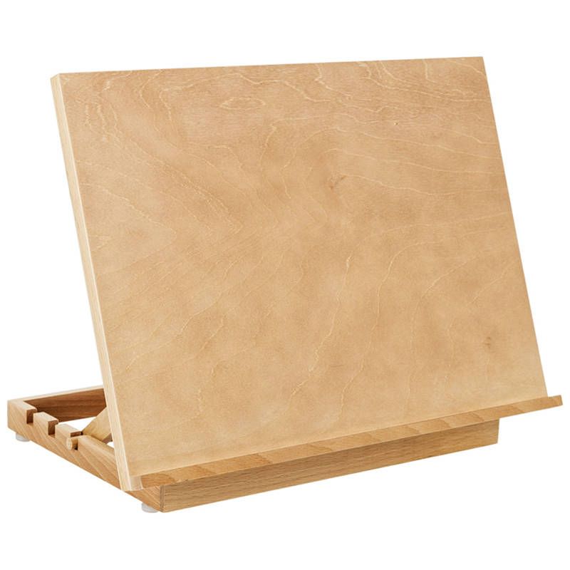 Настольный планшетный мольберт с регулируемым углом наклона Гамма "Студия" отлично подходит для работы с малыми и средними форматами, максимальный размер бумаги - А3. Планшет мольберта представляет собой жесткую основу, за счет этого на мольберте легко можно закрепить бумагу малярным скотчем или зажимами. Поверхность планшета хорошо отшлифована и подходит даже для тонкой бумаги. Три положения наклона мольберта помогут найти удобное положение для творчества.