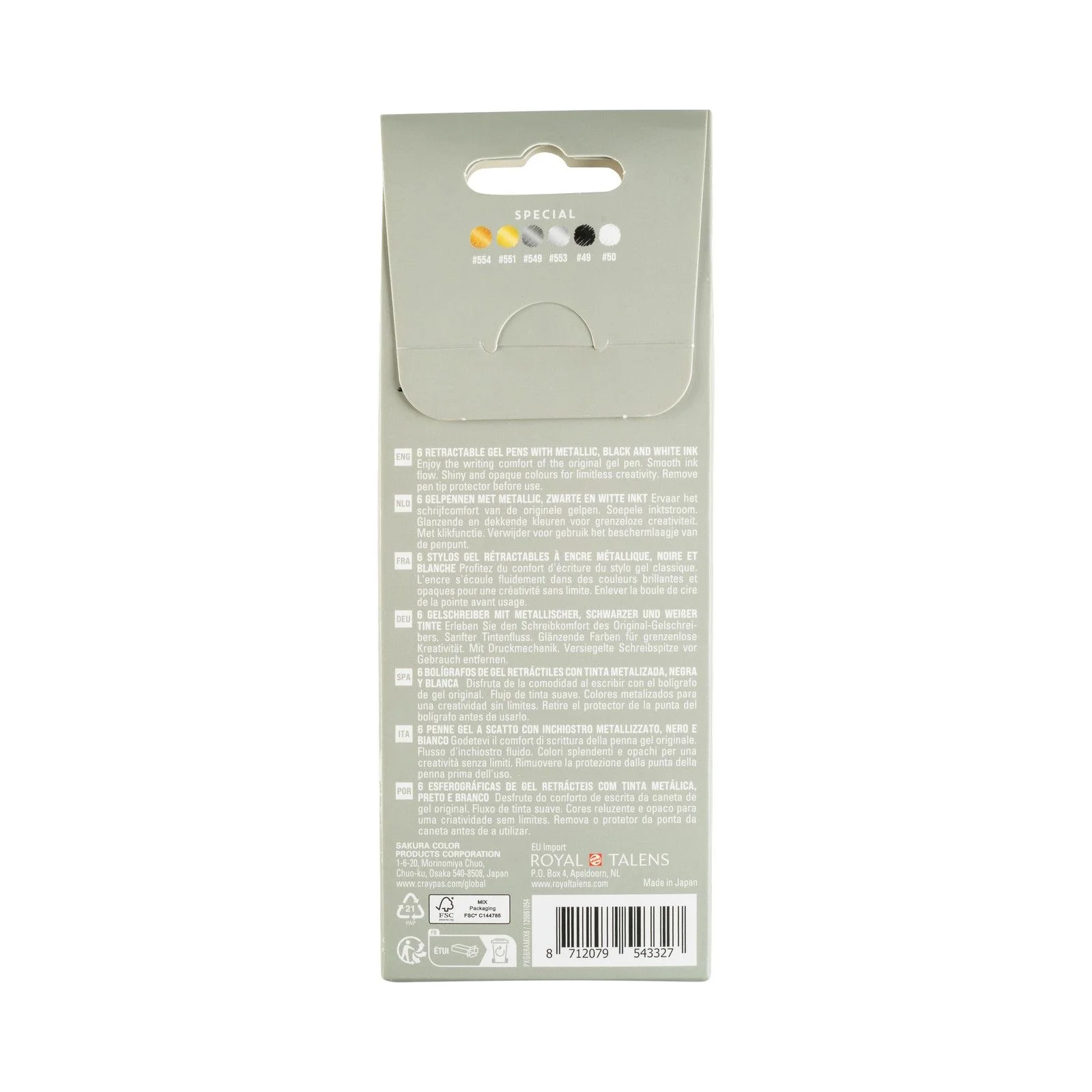 Набор Sakura Gelly Roll Retractable Special Mix включает 6 ручек с кликовым механизмом. Ручки обеспечивают плавное и яркое письмо благодаря насыщенному и равномерному потоку чернил.
