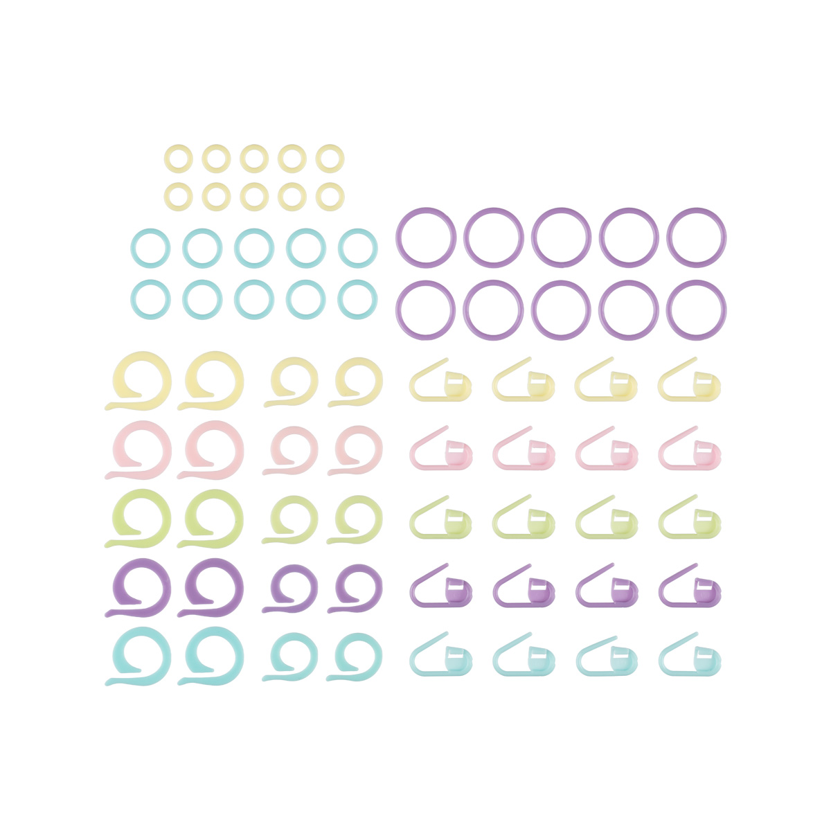 Набор отличается большим разнообразием: в комплекте представлены кольца разных цветов и форм (круглые, кольца с замком и в форме петли), которые идеально подходят для работы с тонкой, средней и толстой пряжей.