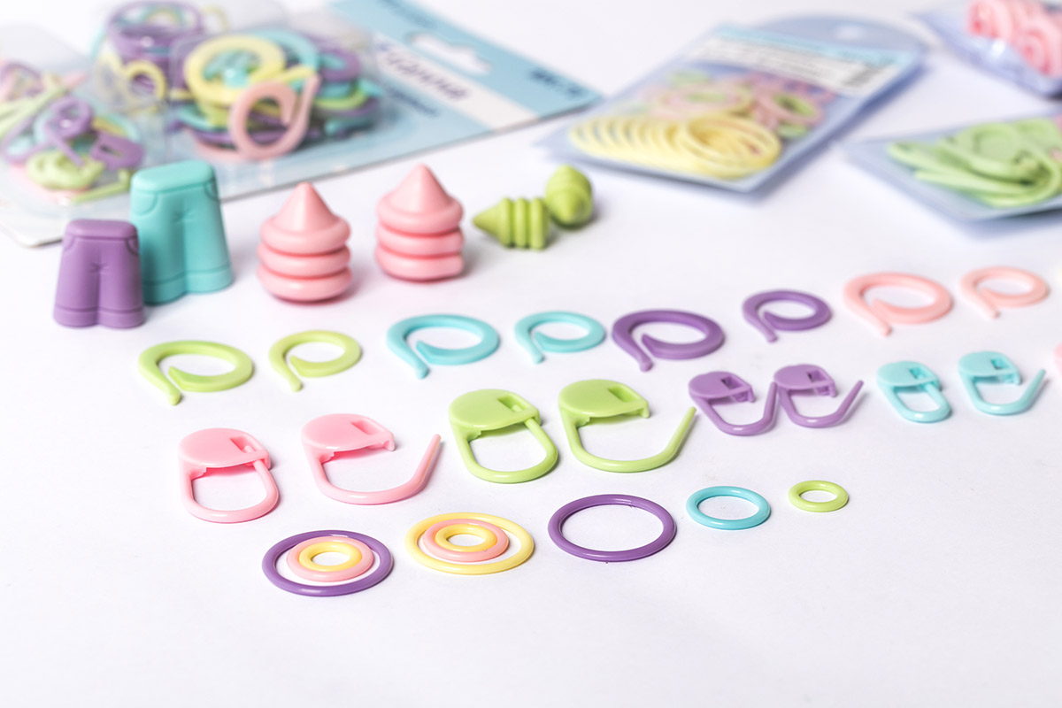 Набор включает кольца разных цветов, что позволяет легко выделять различные элементы, например, начало ряда или раппорты узора, делая вашу работу более организованной.