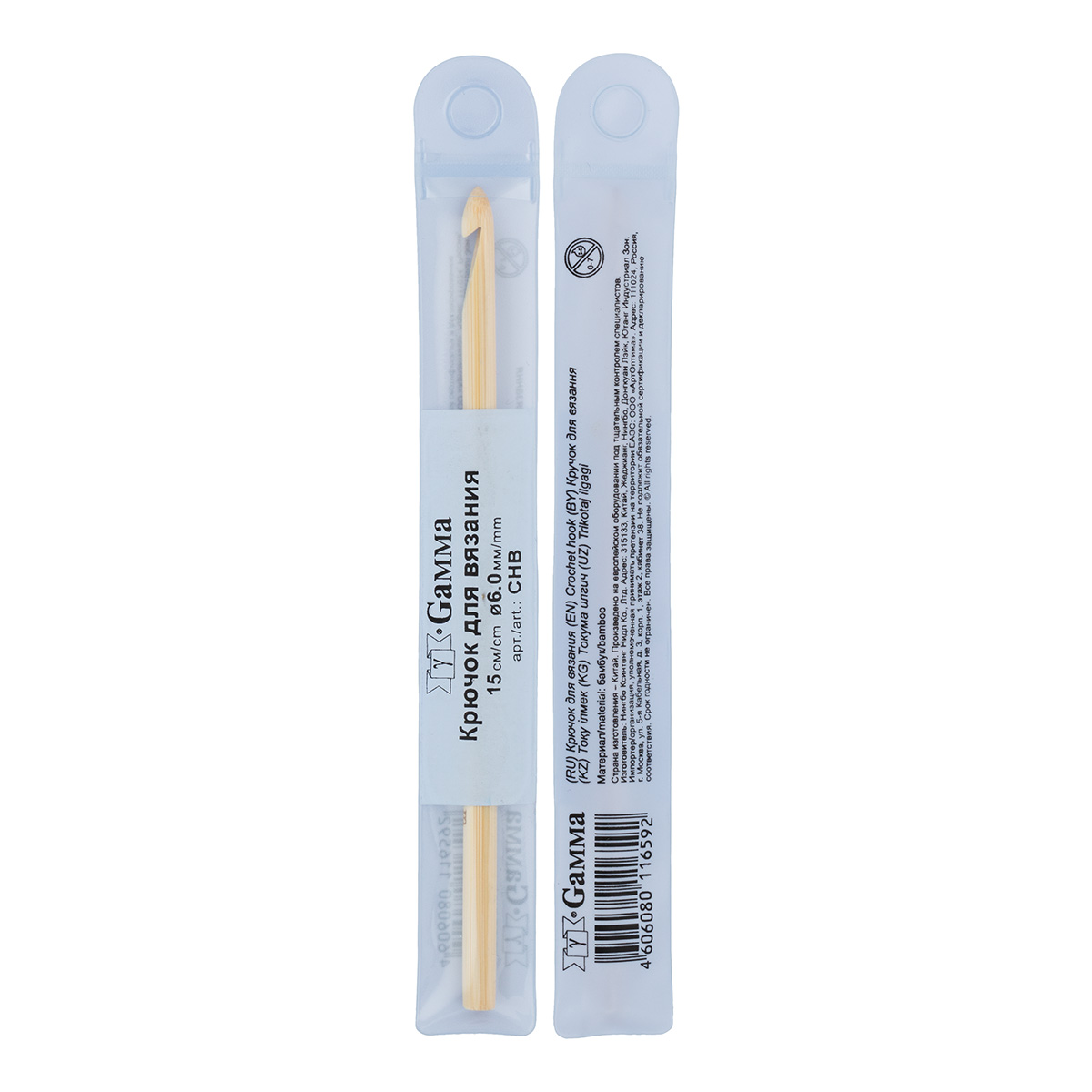 Крючок "Gamma" выполнен из бамбука — безопасного и экологически чистого материала. Он обладает высокой прочностью и не вызывает аллергии, что делает его идеальным для вязания детских вещей.