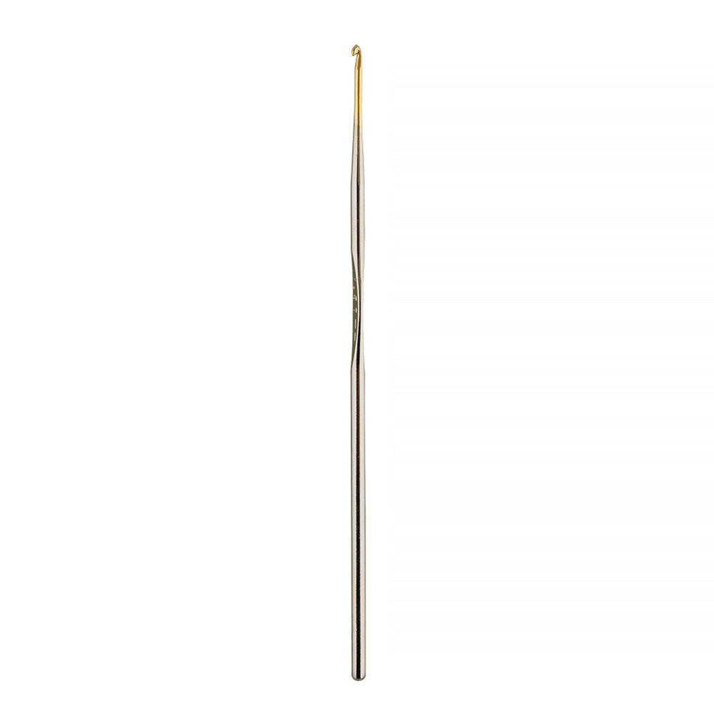Тонкий крючок из прочной стали "Gamma" MCH-S идеально подходит для филигранного вязания кружева тонкой нитью. Он оснащен позолоченной головкой, которая обеспечивает хорошее скольжение нити и позволяет отчетливо видеть каждую петлю.