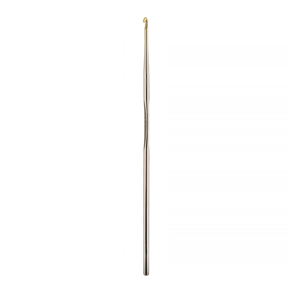 Тонкий крючок из прочной стали "Gamma" MCH-S идеально подходит для филигранного вязания кружева тонкой нитью. Он оснащен позолоченной головкой, которая обеспечивает хорошее скольжение нити и позволяет отчетливо видеть каждую петлю.