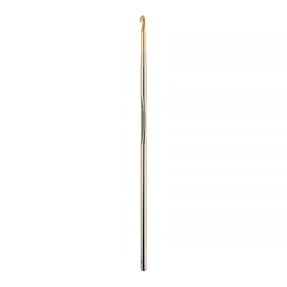 Тонкий крючок из прочной стали "Gamma" MCH-S идеально подходит для филигранного вязания кружева тонкой нитью. Он оснащен позолоченной головкой, которая обеспечивает хорошее скольжение нити и позволяет отчетливо видеть каждую петлю.