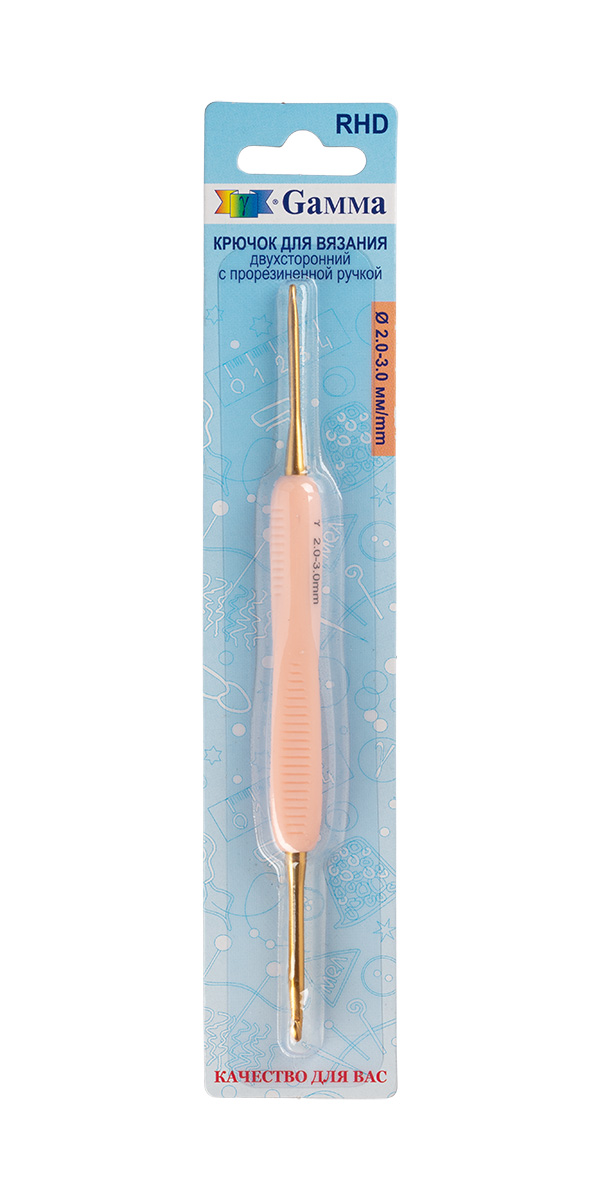 Двухсторонний алюминиевый крючок "Gamma" RHD с прорезиненной ручкой — идеальное решение для тех, кто много вяжет. Это два размера в одном, что позволяет сэкономить место и средства. Благодаря эргономичной ручке с ребристой поверхностью, крючок комфортно лежит в руке, не выскальзывает и не оставляет мозолей.