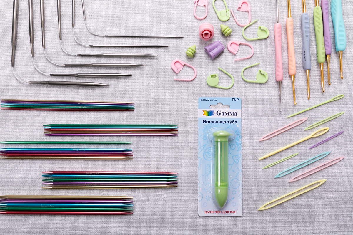 - Два размера в одном: позволяет сэкономить место при хранении и удобно работать с разной толщиной пряжи.