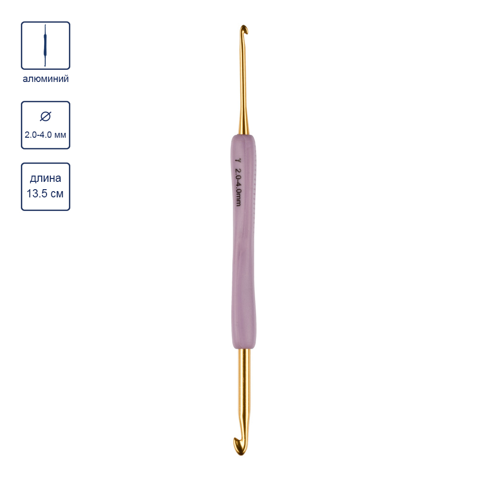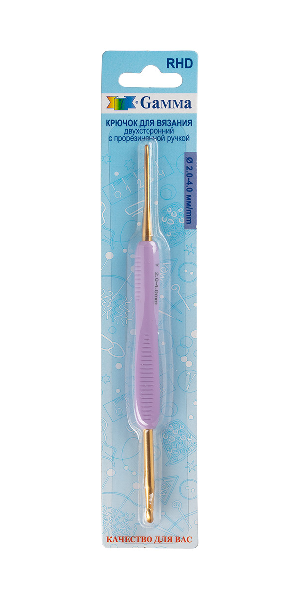 Двухсторонний алюминиевый крючок "Gamma" RHD с прорезиненной ручкой — идеальное решение для тех, кто много вяжет. Это два размера в одном, что позволяет сэкономить место и средства. Благодаря эргономичной ручке с ребристой поверхностью, крючок комфортно лежит в руке, не выскальзывает и не оставляет мозолей.