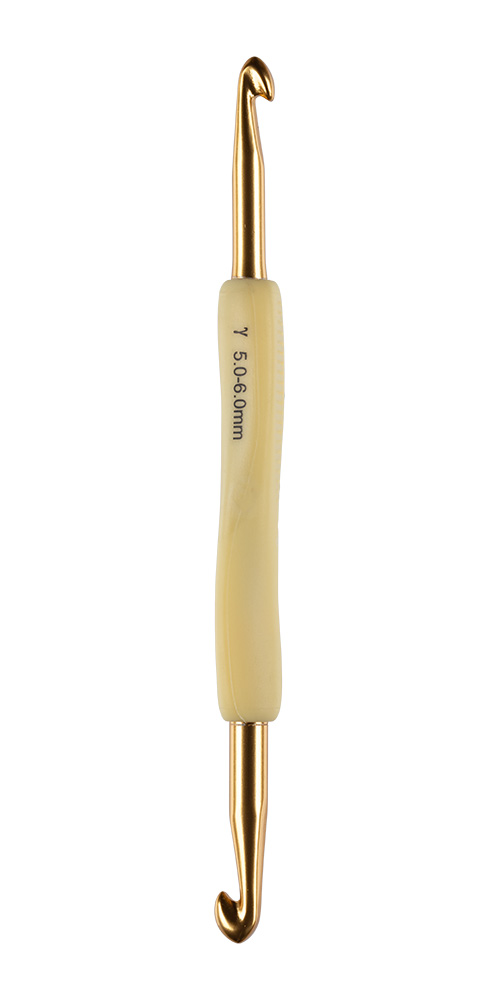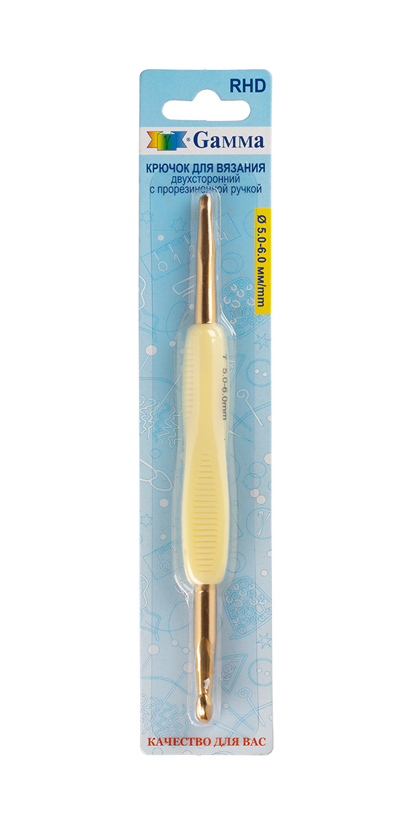 Двухсторонний алюминиевый крючок "Gamma" RHD с прорезиненной ручкой — идеальное решение для тех, кто много вяжет. Это два размера в одном, что позволяет сэкономить место и средства. Благодаря эргономичной ручке с ребристой поверхностью, крючок комфортно лежит в руке, не выскальзывает и не оставляет мозолей.