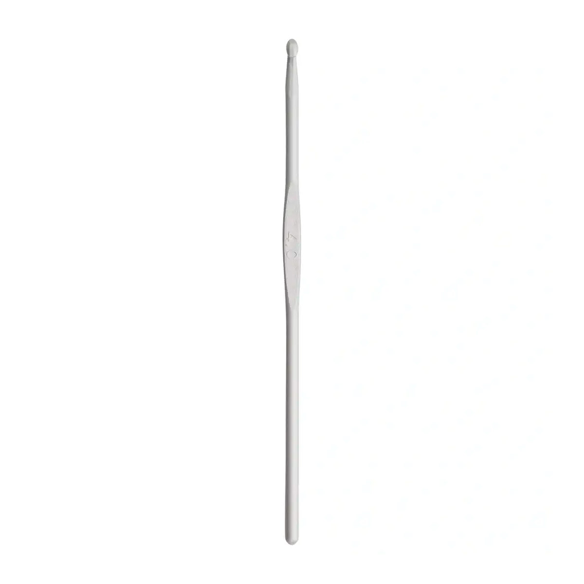 Классический алюминиевый крючок с тефлоновым покрытием — идеальный инструмент для работы с шерстяной пряжей. Он удобно лежит в руке благодаря малому весу и нескользящей выемке для большого пальца, что позволяет вязать долго, не чувствуя усталости. Специально выполненная канавка на корпусе обеспечивает равномерное движение нити и формирование красивой структуры вязки, а тефлоновое покрытие гарантирует плавное скольжение.