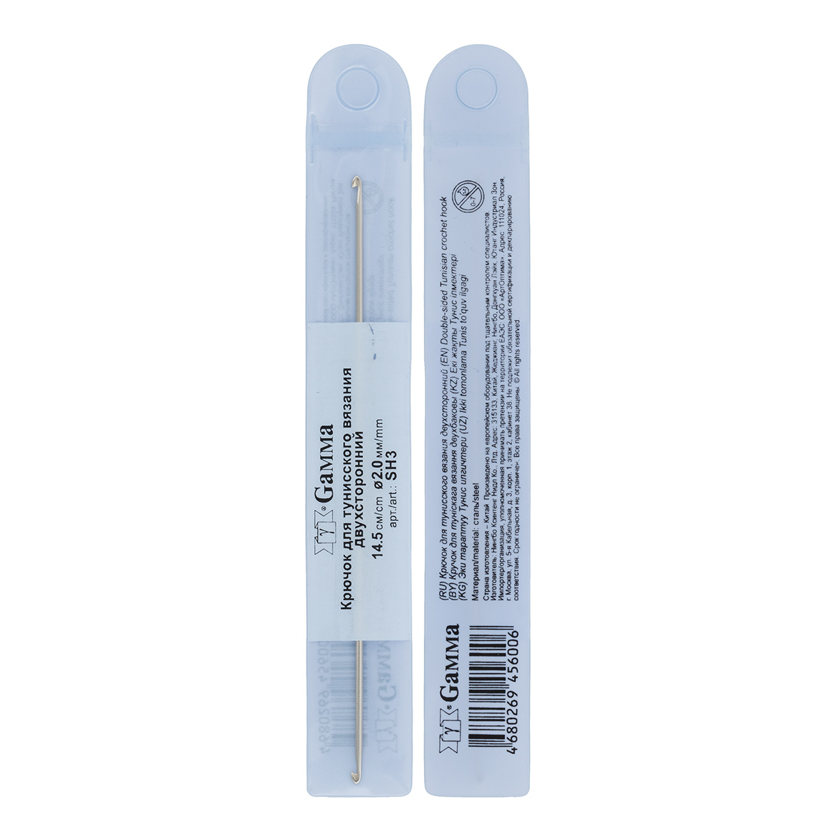 Двухсторонний металлический крючок "Gamma" SH3 — это универсальный инструмент, который идеально подходит как для обычного, так и для тунисского вязания. Благодаря своей гладкой поверхности и продуманной форме, он удобен в работе и обеспечивает легкое скольжение пряжи.