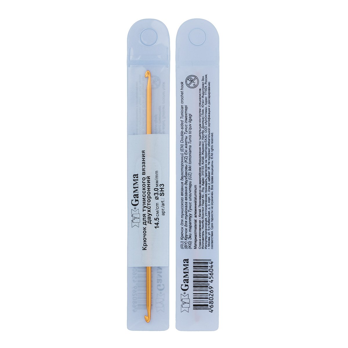 Двухсторонний металлический крючок "Gamma" SH3 — это универсальный инструмент, который идеально подходит как для обычного, так и для тунисского вязания. Благодаря своей гладкой поверхности и продуманной форме, он удобен в работе и обеспечивает легкое скольжение пряжи.