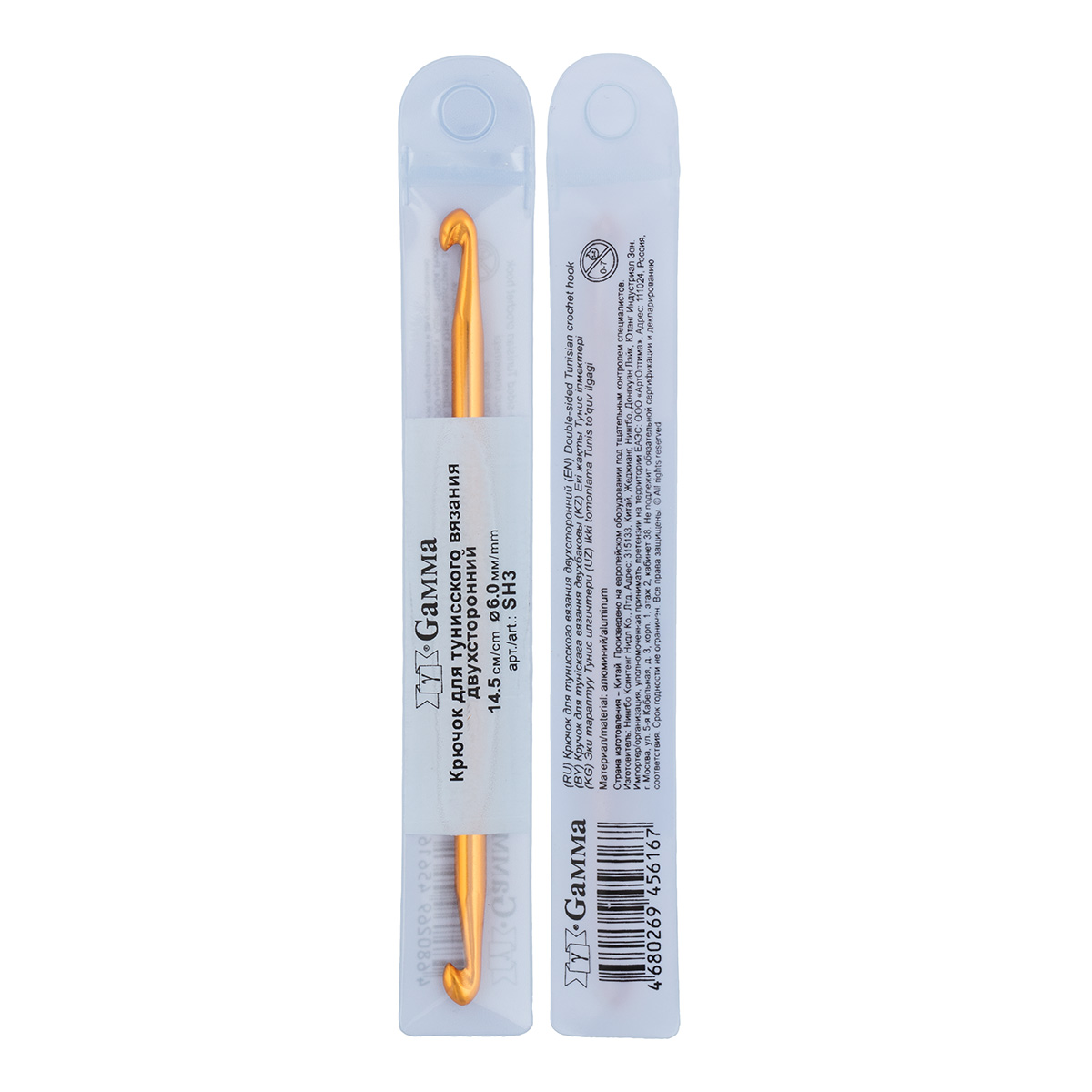 Двухсторонний металлический крючок "Gamma" SH3 — это универсальный инструмент, который идеально подходит как для обычного, так и для тунисского вязания. Благодаря своей гладкой поверхности и продуманной форме, он удобен в работе и обеспечивает легкое скольжение пряжи.