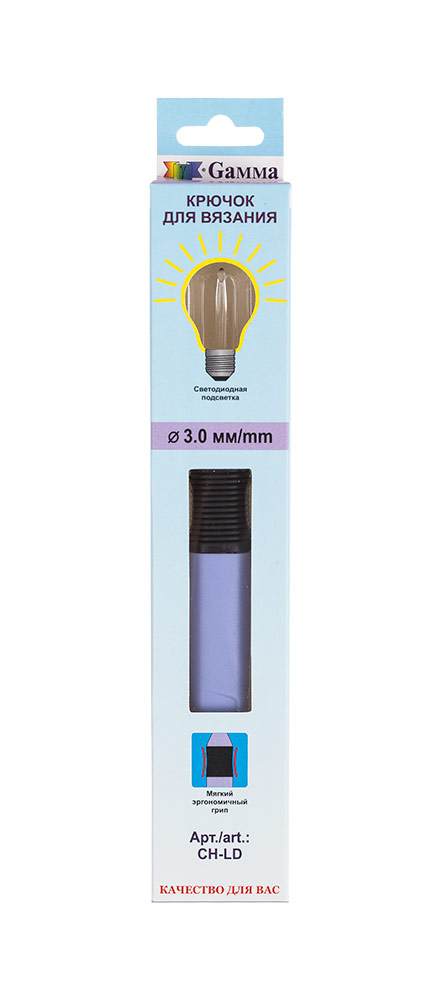 Крючок с встроенной подсветкой от "Gamma" — это незаменимый инструмент для всех, кто любит вязать из темной пряжи или при недостаточном освещении. Он обеспечивает идеальную видимость каждой петли, позволяя вам наслаждаться творчеством в любое время суток.