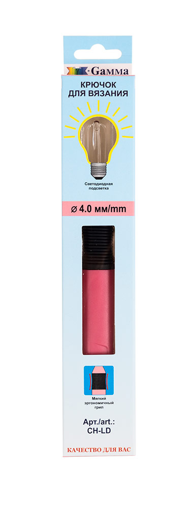 Крючок с встроенной подсветкой от "Gamma" — это незаменимый инструмент для всех, кто любит вязать из темной пряжи или при недостаточном освещении. Он обеспечивает идеальную видимость каждой петли, позволяя вам наслаждаться творчеством в любое время суток.