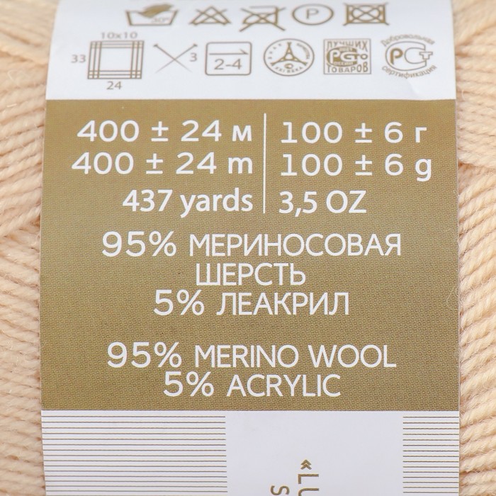 - Состав: 95% мериносовая шерсть, 5% акрил