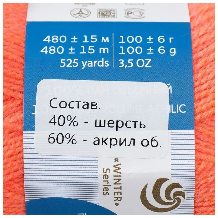 - Состав: 60% акрил, 40% шерсть