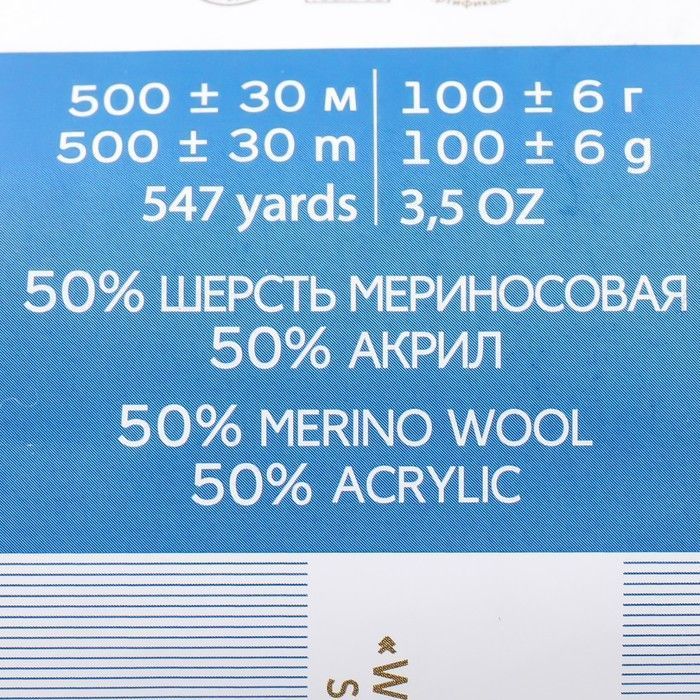 - Состав: 50% мериносовая шерсть, 50% акрил