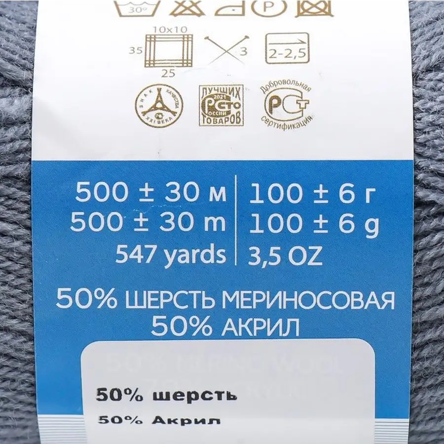 - Состав: 50% мериносовая шерсть, 50% акрил