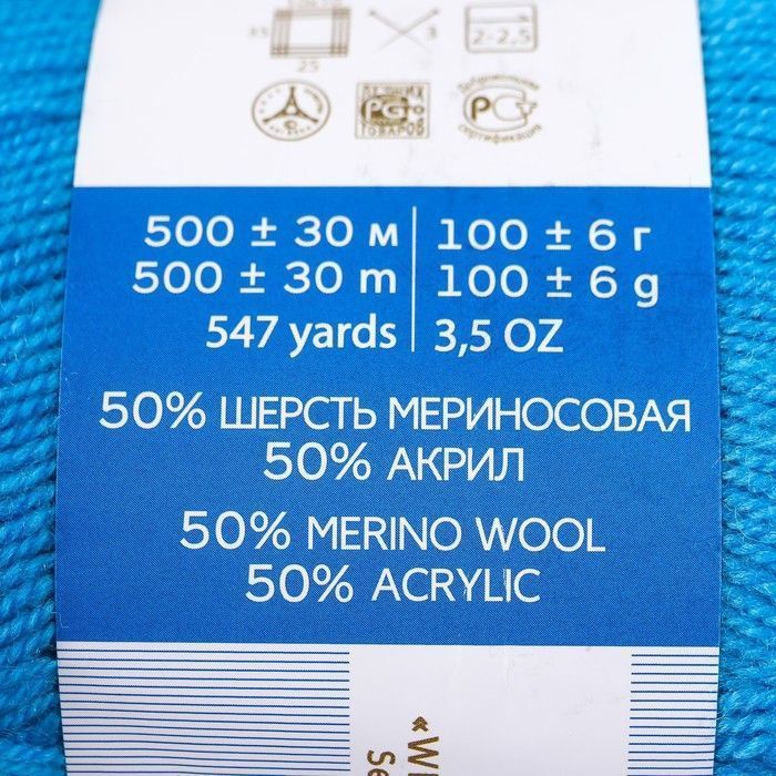 - Состав: 50% мериносовая шерсть, 50% акрил