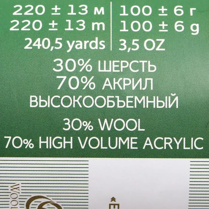- Состав: 30% шерсть, 70% акрил